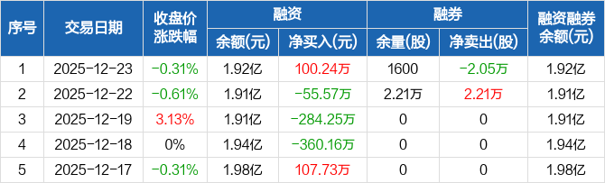顺发恒能:融资净买入100.24万元,融资余额1.92亿元(12-23)