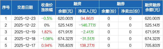 香港科技ETF:融资净买入94.86万元,融资余额620万元(12-23)
