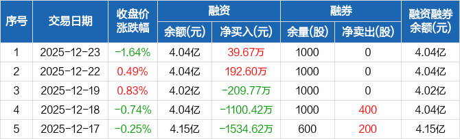 天源迪科:融资净买入39.67万元,融资余额4.04亿元(12-23)