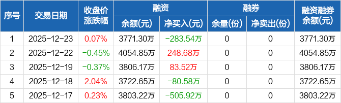 银行ETF:融资净偿还283.54万元,融资余额3771.3万元(12-23)