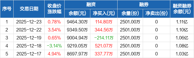 创业板成长ETF:融资净买入114.8万元,融资余额9464.3万元(12-23)