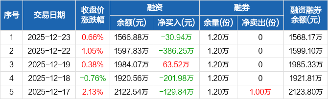 A50ETF:融资净偿还30.94万元,融资余额1566.88万元(12-23)