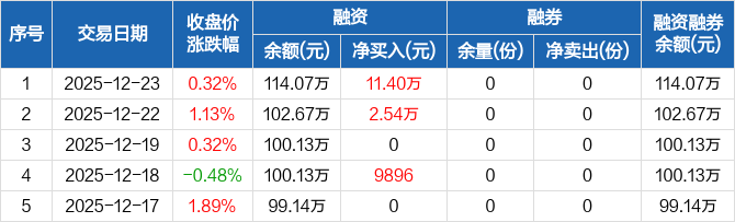 中证A500ETF天弘:融资净买入11.4万元,融资余额114.07万元(12-23)