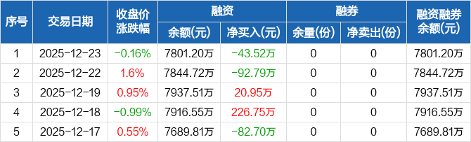 标普ETF:融资净偿还43.52万元,融资余额7801.2万元(12-23)