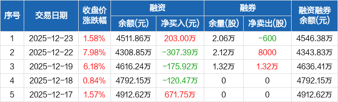 戎美股份:融资净买入203万元,融资余额4511.86万元(12-23)
