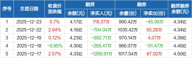 芯片ETF:融资净买入116.37万元,融资余额4.17亿元(12-23)