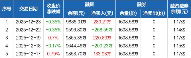 现金流ETF:融资净买入289.21万元,融资余额9886.01万元(12-23)