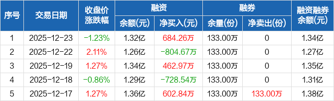 机器人50ETF:融资净买入684.26万元,融资余额1.32亿元(12-23)