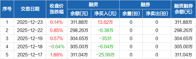 创业板200ETF易方达:融资净买入13.62万元,融资余额311.88万元(12-23)