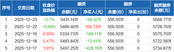 医疗ETF:融资净偿还58.32万元,融资余额5431.14万元(12-23)