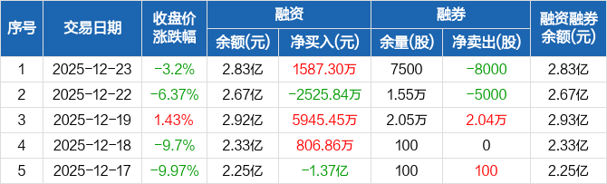 太阳电缆:融资净买入1587.3万元,融资余额2.83亿元(12-23)