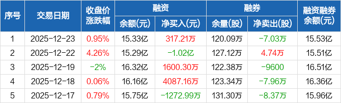 金风科技:融资净买入317.21万元,融资余额15.33亿元(12-23)