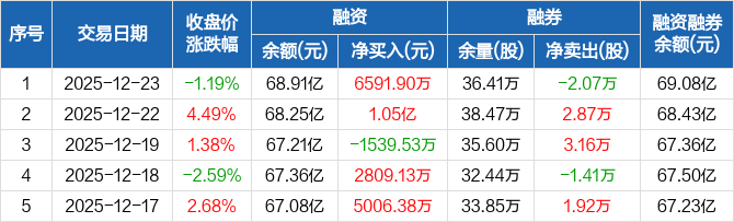 三花智控:融资净买入6591.9万元,融资余额68.91亿元(12-23)