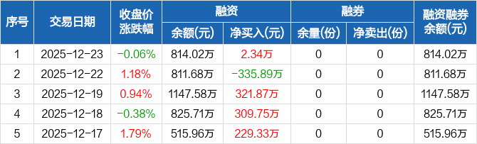 中证500ETF东财:融资净买入2.34万元,融资余额814.02万元(12-23)