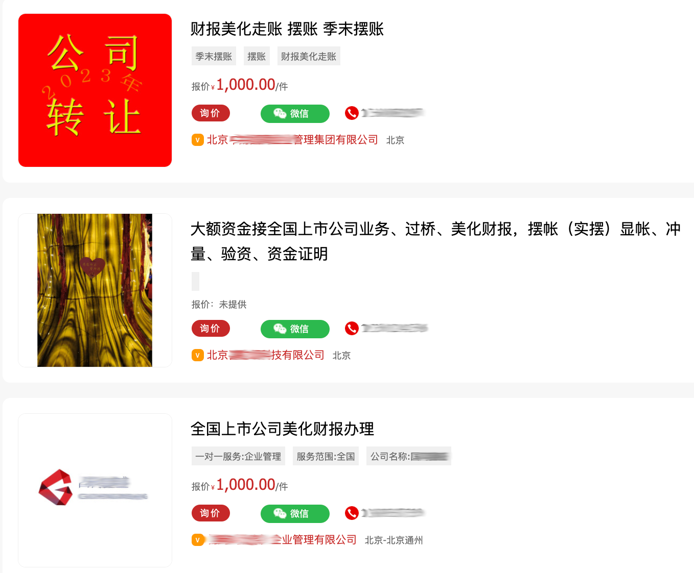 年底“财报美化”业务公然揽客,主要客户群为上市公司或拟IPO公司