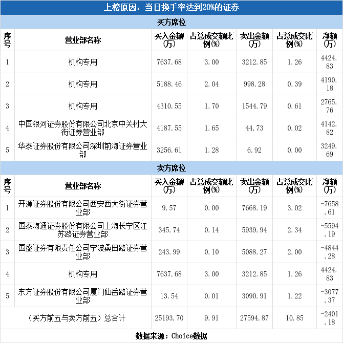 多主力现身龙虎榜,海南瑞泽换手率达34.79%(12-24)
