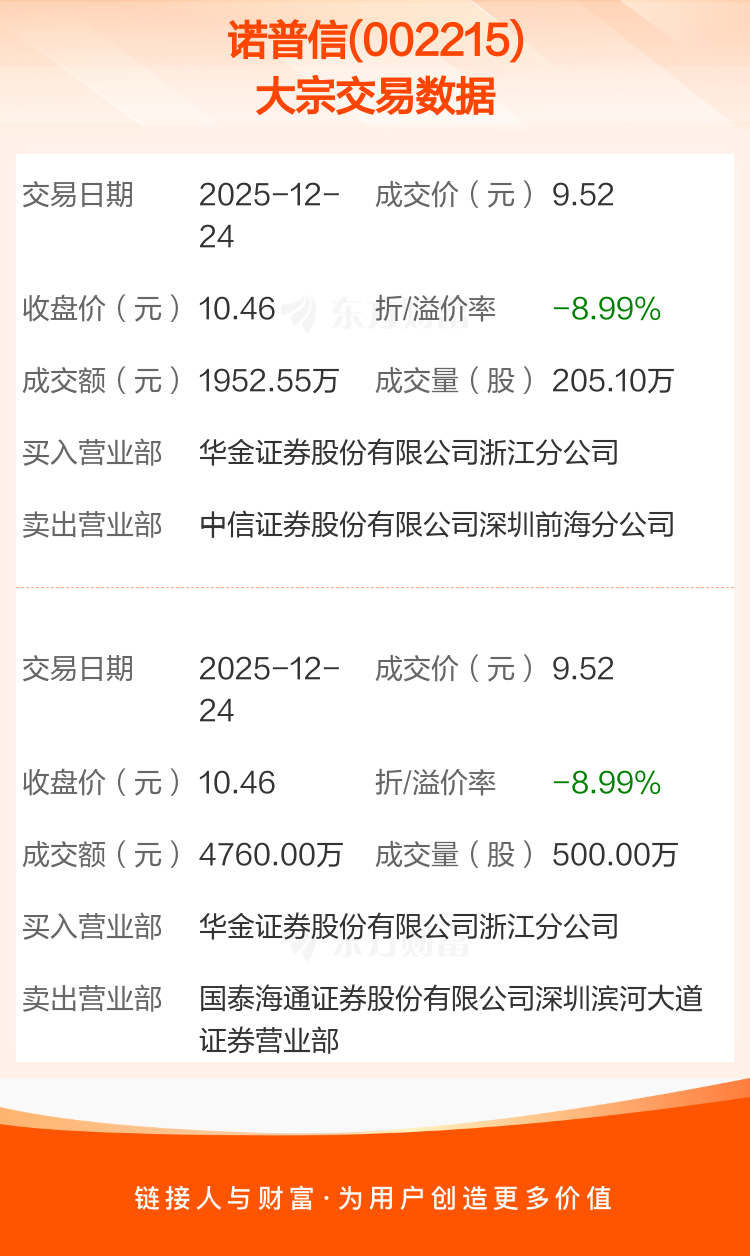 大宗交易:诺普信成交6712.55万元,折价8.99%(12-24)