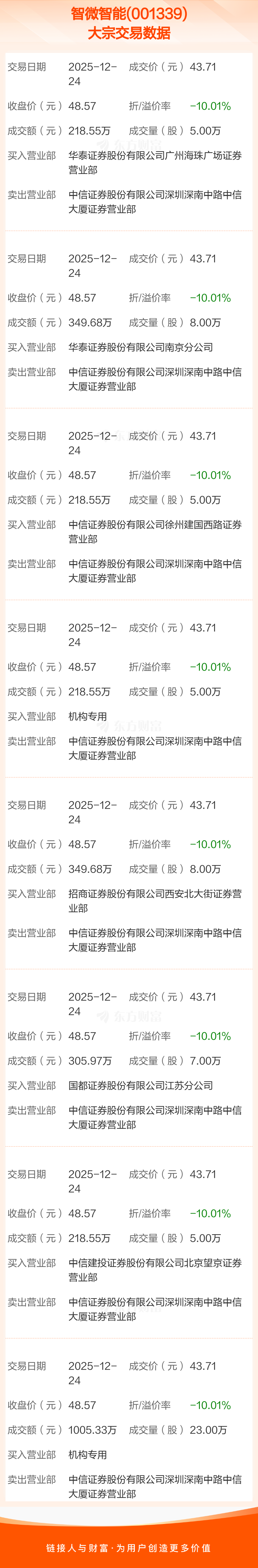 大宗交易:智微智能成交2884.86万元,折价10.01%(12-24)