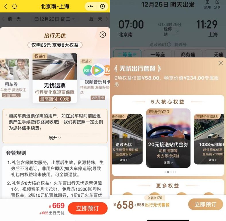他以记者调查中发现的案例为例表示,若平台将火车票与其他产品捆绑销售,却以不显眼的小字提示,则涉嫌误导性宣传。“如果展示的最优惠价格(如北京到上海的最低价658元,12306票价为669元)在实际交易中根本无法单独购买,必须同时购买其他产品或服务才可以按此价格购票,但是捆绑搭售的其他产品却以小字形式显示,这种做法确实极易误导消费者。”赵占领坦言。