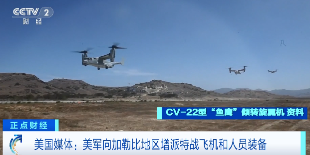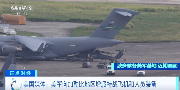 美国《华尔街日报》援引一名美国官员的话说,至少10架由特战部队使用的CV-22型“鱼鹰”倾转旋翼机22日晚从美国新墨西哥州坎农空军基地飞抵加勒比地区。根据飞行跟踪网站数据,同一天,来自佐治亚州斯图尔特堡和肯塔基州坎贝尔堡陆军基地的C-17运输机抵达波多黎各。另一名美国官员证实,这些飞机上载有美军人员和装备。