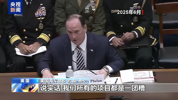 今年6月,美国海军部长约翰·费伦在众议院的听证会上承认,海军造船基地处于混乱状态。“我们所有的项目都是一团糟。说实话,项目工期滞后而且严重超支。我认为我们进度最好的项目,是工期落后6个月、预算超了57%。”(来源:央视新闻)