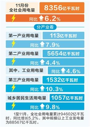 时报数说 | 11月份全社会用电量同比增长6.2%