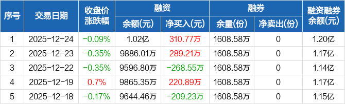 现金流ETF:融资净买入310.77万元,融资余额1.02亿元(12-24)