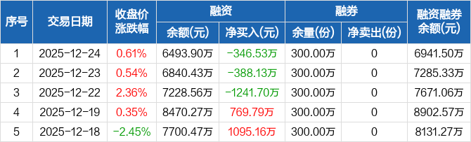 创业50ETF:连续3日融资净偿还累计1976.36万元(12-24)