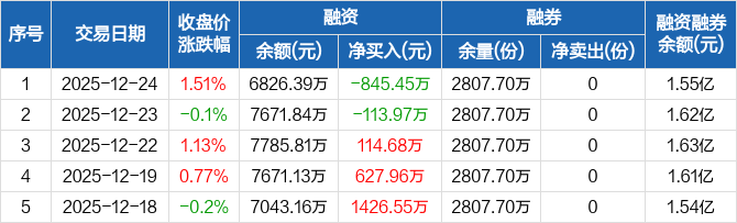 1000ETF:融资净偿还845.45万元,融资余额6826.39万元(12-24)