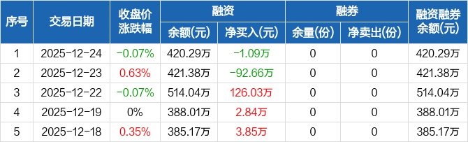 港股央企红利ETF:融资净偿还1.09万元,融资余额420.29万元(12-24)