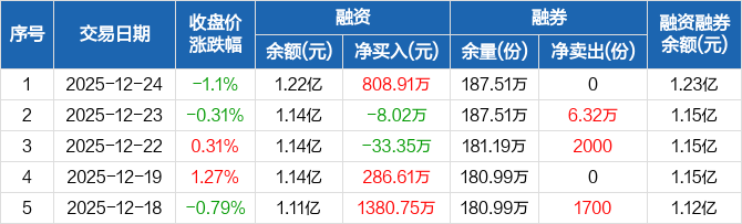 养殖ETF:融资净买入808.91万元,融资余额1.22亿元(12-24)