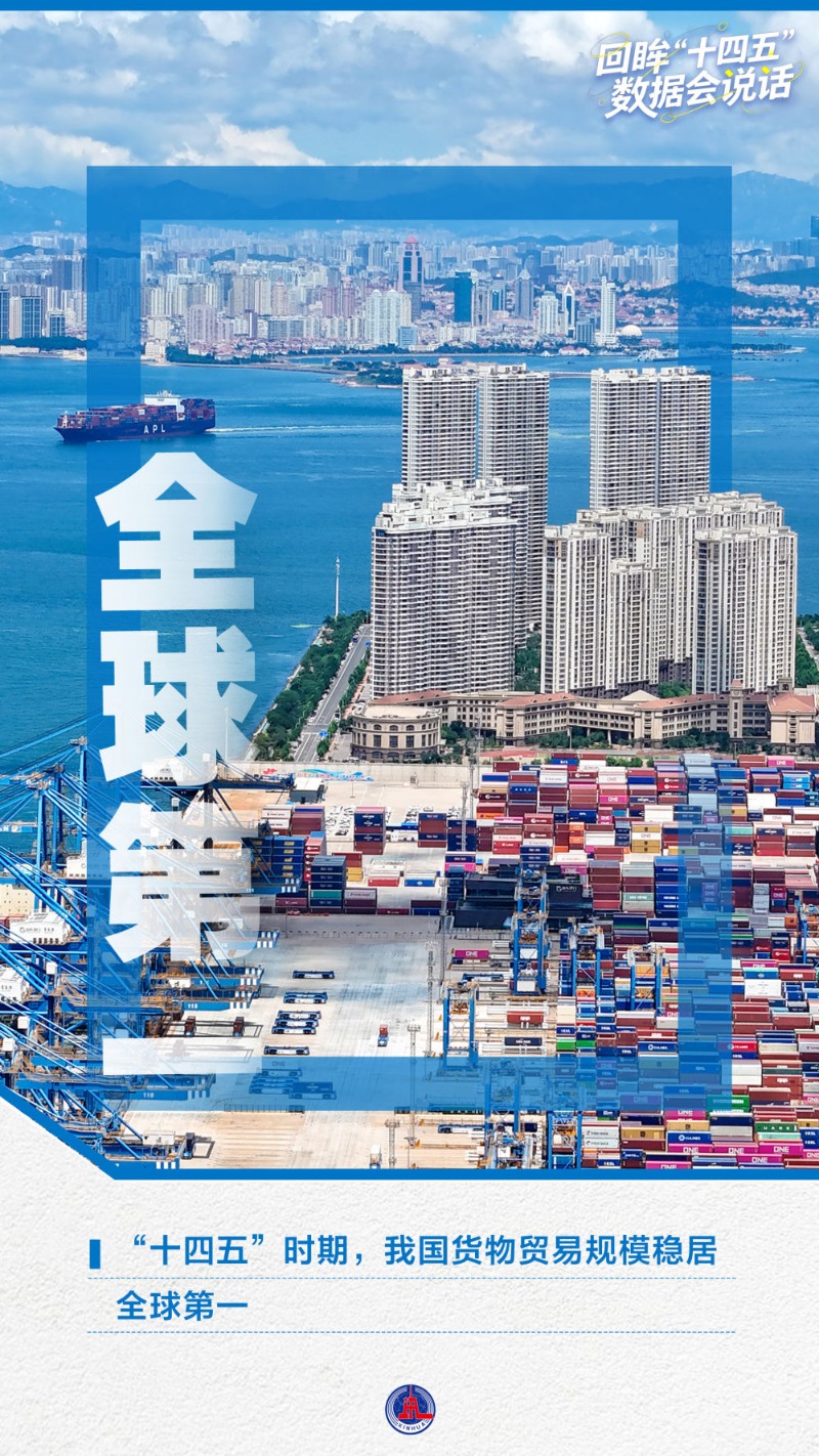 “十四五”以来,我国出口、进口国际市场份额分别稳定在14%和10%以上。