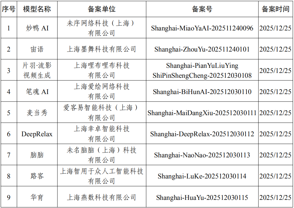 每经AI快讯,12月25日,据“网信上海”消息,截至12月25日,上海市新增9款已完成备案的生成式人工智能服务,累计已完成137款生成式人工智能服务备案。