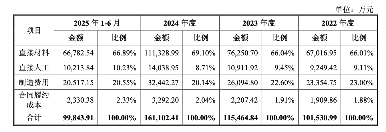 从上游来看,报告期内铜价单边上涨,分别为65.98元、66.30元、72.16元和73.68元,这导致公司在报告期内的直接材料成本上涨明显,2022年到2024年分别为6.70亿元、7.63亿元和11.13亿元。然而,公司在二轮问询回复中表示,由于与新能源客户签订的多为固定价格合同,不具备原材料价格联动机制,因此在大宗商品价格上涨的背景下,公司并不能及时将相关的原材料价格上涨传导至新能源汽车、风光储领域电连接产品,这也成为报告期内公司毛利率结构性下降的根本原因。