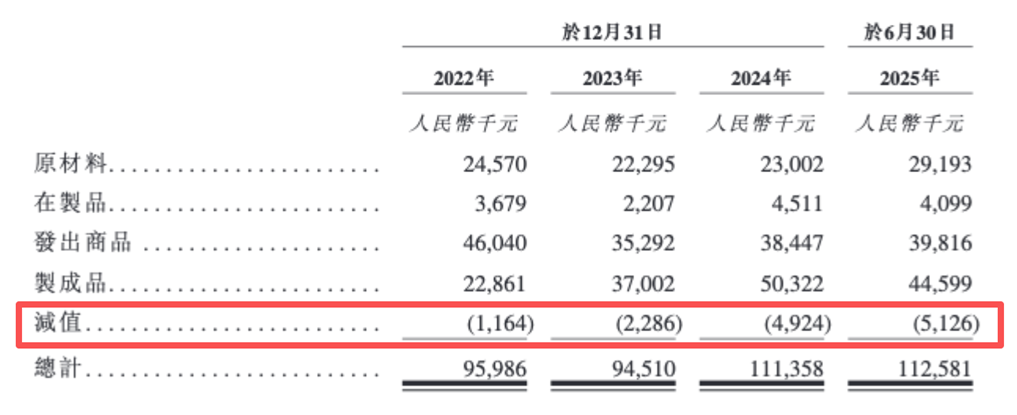 其次是存货减值损失的扩大。2024年公司存货减值损失达4924万元,占当年营收的14.5%;2025年上半年这一数字已达5126万元,超过2024年全年。与此同时,存货周转天数从2022年的216天延长至2024年的287天,反映出公司库存管理能力不足,产品去化压力增大。