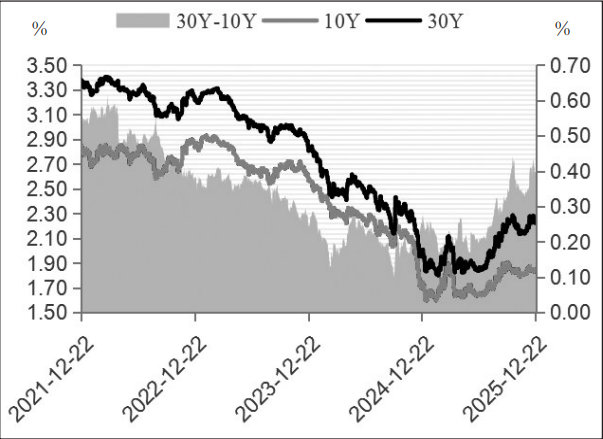 展望2026年,债市低利率环境延续,资产比价以及机构行为对债市的影响权重将加大。传统配置盘中,银行面临利率风险指标考核压力,险资配置权重逐步向权益倾斜,券商、基金负债端相对不稳定。在市场、政策等因素的综合作用下,交易型债券需求预计下滑,这或是超长债波动率高于其他期限债券的原因之一。