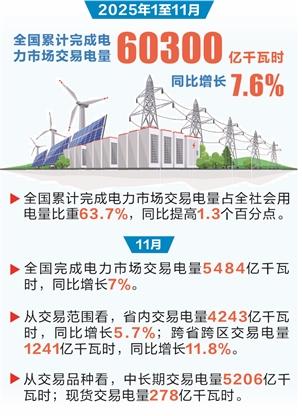 时报数说 | 1至11月全国电力市场交易电量破6万亿千瓦时