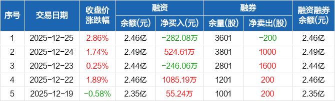 敏芯股份:融资净偿还282.08万元,融资余额2.46亿元(12-25)