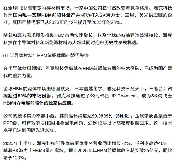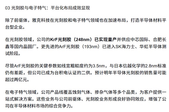 雅克科技:光刻胶全链突破!HBM前驱体纯度99.9999%!全球卡位,国内唯一!