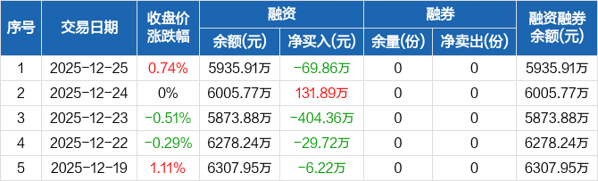 医药ETF:融资净偿还69.86万元,融资余额5935.91万元(12-25)