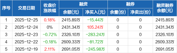 恒生互联网科技ETF:融资净偿还15.44万元,融资余额2415.89万元(12-25)