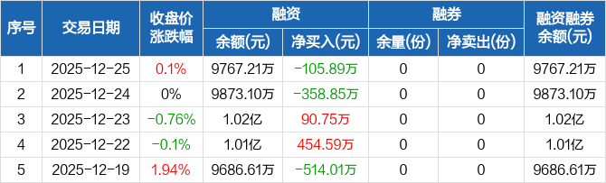 恒生互联网ETF:融资净偿还105.89万元,融资余额9767.21万元(12-25)