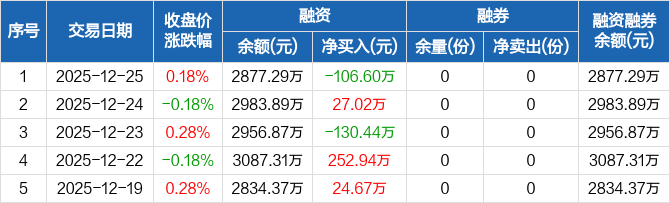 价值ETF:融资净偿还106.6万元,融资余额2877.29万元(12-25)