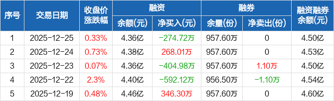 人工智能ETF:融资净偿还274.72万元,融资余额4.36亿元(12-25)