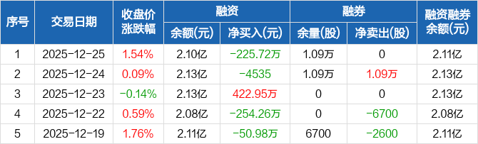 海晨股份:融资净偿还225.72万元,融资余额2.1亿元(12-25)