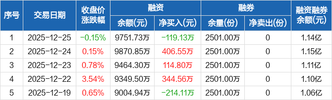 创业板成长ETF:融资净偿还119.13万元,融资余额9751.73万元(12-25)