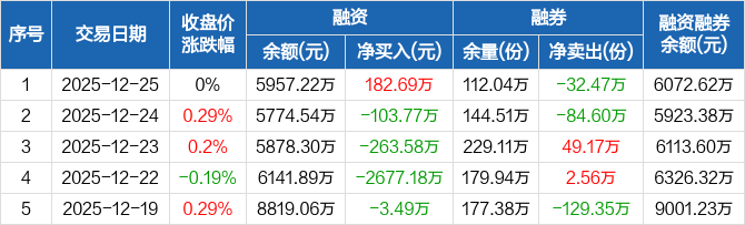 电力ETF:融资净买入182.69万元,融资余额5957.22万元(12-25)