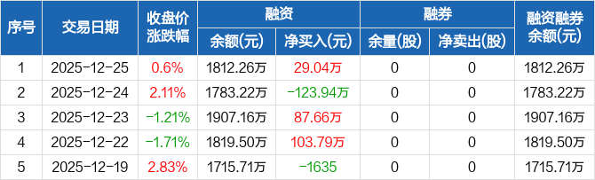 瑞晨环保:融资净买入29.04万元,融资余额1812.26万元(12-25)