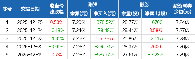 中山公用:融资净偿还378.52万元,融资余额7.2亿元(12-25)
