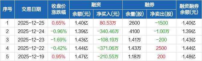 徐家汇:融资净买入80.53万元,融资余额1.4亿元(12-25)